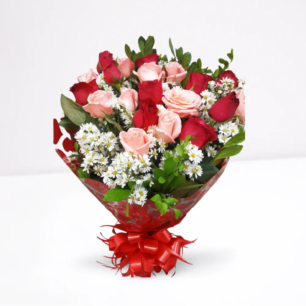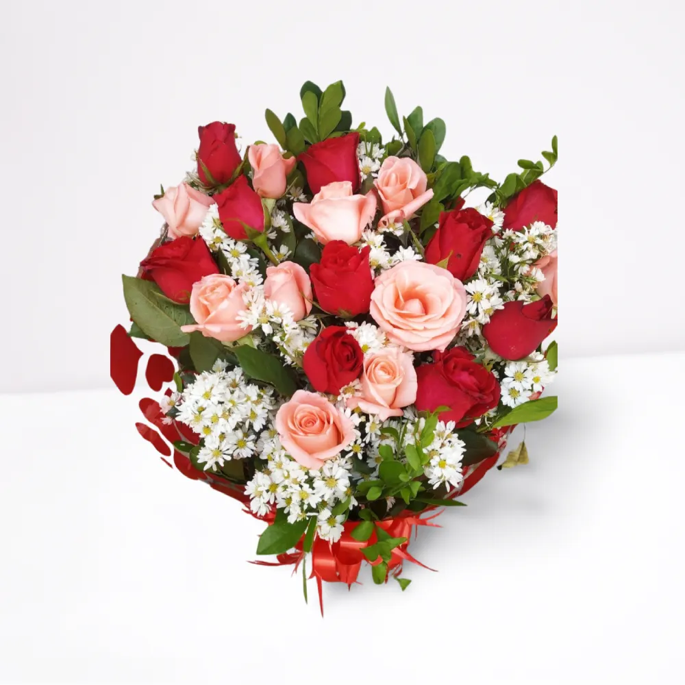 Buquê 20 Rosas Vermelhas e Cor de Rosa. Um gesto elegante que une intensidade e delicadeza. Ideal para demonstrar amor com charme. Envio no mesmo dia.
