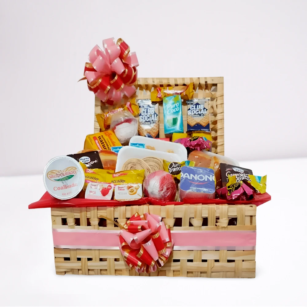 Cesta de café da manhã 60 itens variados, perfeita para presentear com afeto e tornar qualquer manhã mais especial. Um gesto de carinho em forma de sabor.