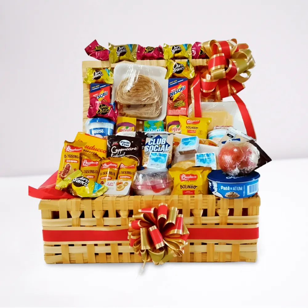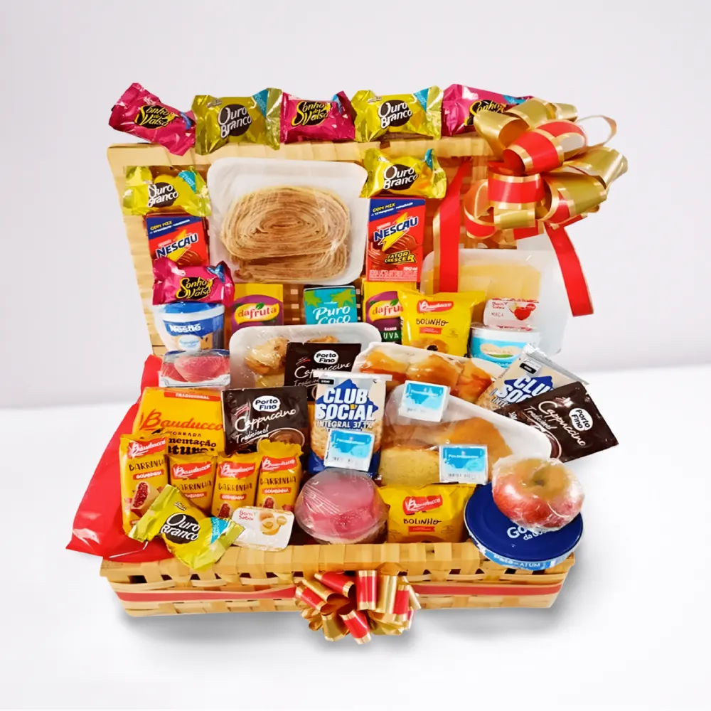 Cesta de café da manhã 80 itens, ideal para presentear com carinho e generosidade. Uma seleção completa de sabores para tornar qualquer manhã mais especial.